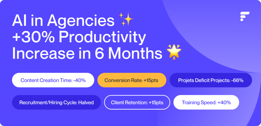 A IA generativa já não é uma promessa futurista reservada aos GAFAM. Tornou-se uma ferramenta de produção diária nas agências que decidiram não sofrer a transformação. De acordo com um estudo da PwC, os setores mais expostos à IA quadruplicaram a sua produtividade entre 2018 e 2024, passando de 7% para 27%. Entretanto, os retardatários estagnaram em torno de 9%.